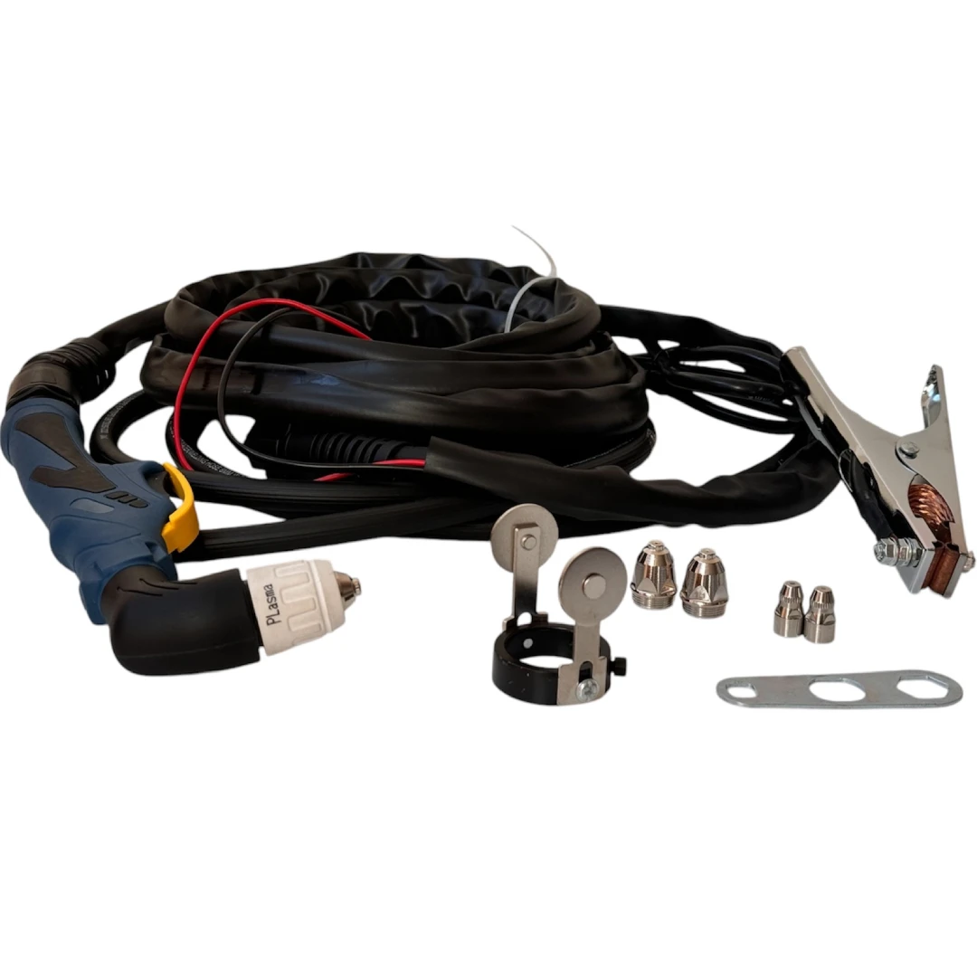 Кабел маса (1.1 м, 12 mm²) Плазмен бренер PT31 (5 м) Захранващ кабел (1.2 м) Маркуч (2 м) Водещо колело за плазма/желязо (φ40mm) 2 бр. скоби за маркуч 2 бр. дюзи Обикновенна маска, четка за почистване и чукче