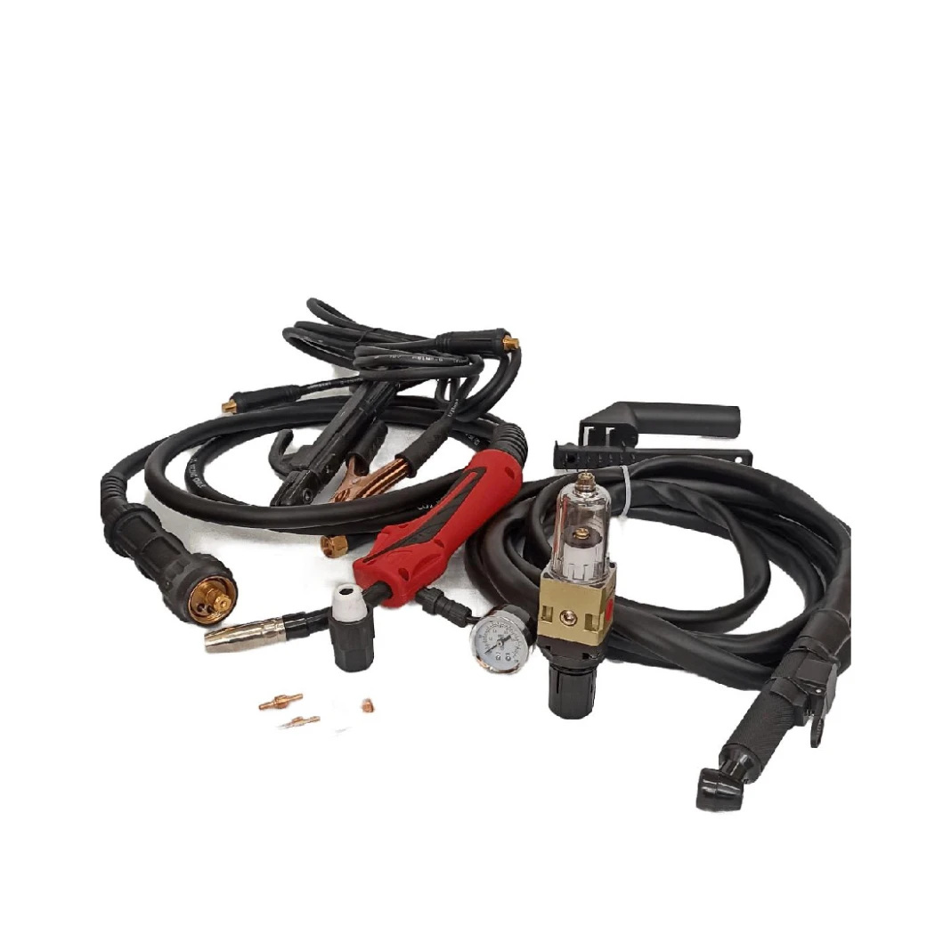 обикновена маска за заваряване - 1 бр. четка с чукче - 1 бр.. шланг за MIG телоподаващо- 3М/16мм2/15АК / Защитата на дръжката е изработена от плътна гума,има бутон за управление на дръжката ,въздушно охлаждане ,дължина на струята на горелката - 3 метра, вид на стеблото - ЕВРО конектор/ 4.40 метра кабел/горелка за CUT плазмено рязане ,манометър,въздушен регулатор,въздушен филтър / кабел маса - 1.90 м захранващ кабел - 1.80 м кабел за електрода - 2.80 м. дюзи 2 бр /0.8mm-1 бр,1.00mm-1 бр/